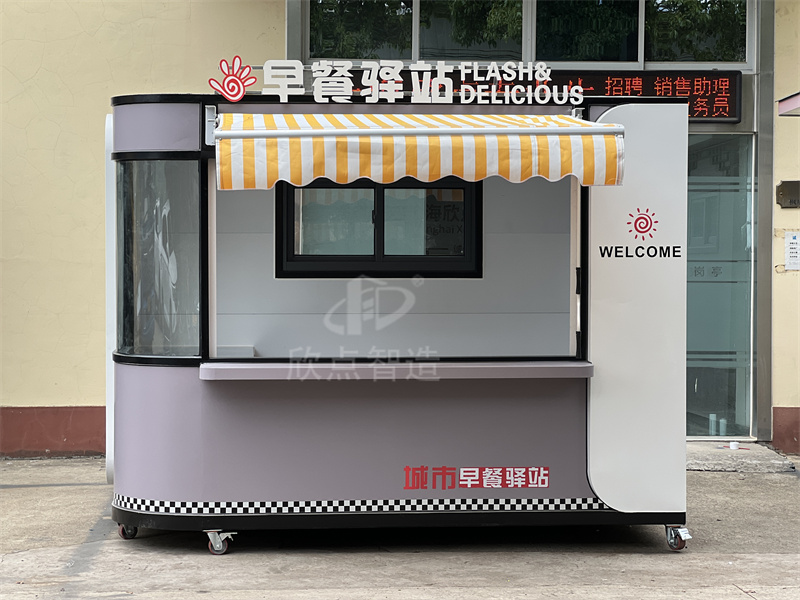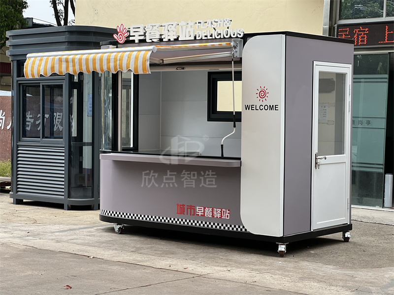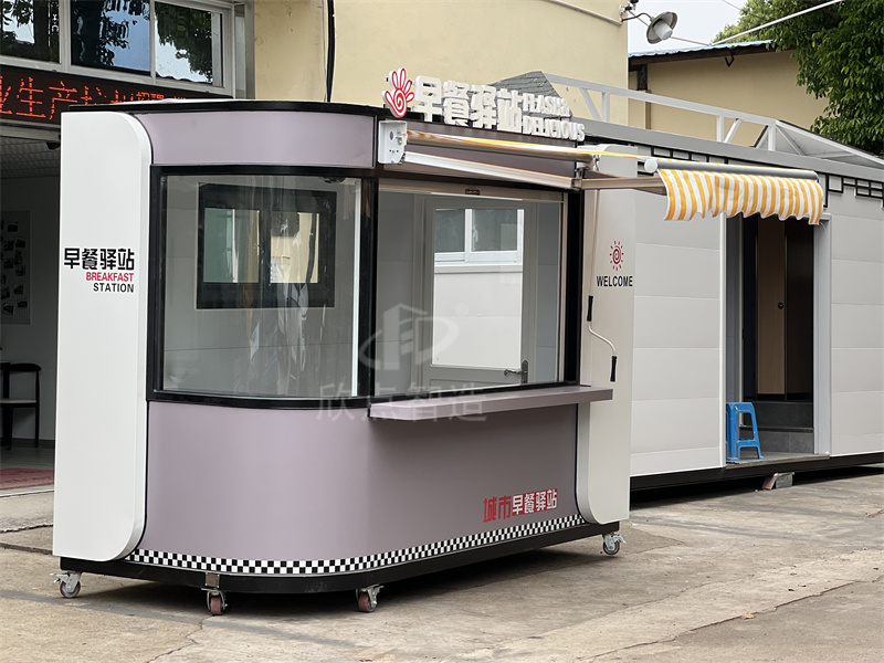 一般戶外售貨亭的要求,都是以鍍鋅鋼管作為框架,再加上金屬板材外觀防腐耐用。這樣的可移動售賣亭,外觀時尚現(xiàn)代,內部空間大。