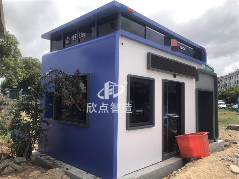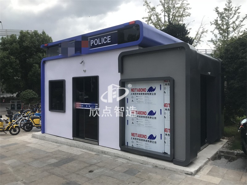 常用的警用治安崗亭尺寸有(寬*長*高):2m*2m*2.9m、2m*3m*3m、2*4*3m。2.5m*3m、2.5*3~5m*3m、2.5*5~8m*3m