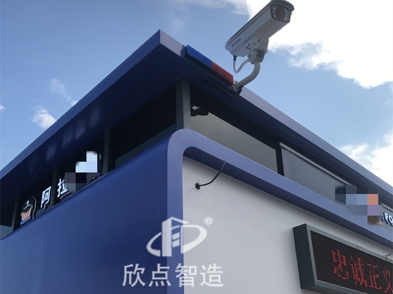 治安崗亭內部配置:監(jiān)控、LED顯示屏、標志、警燈