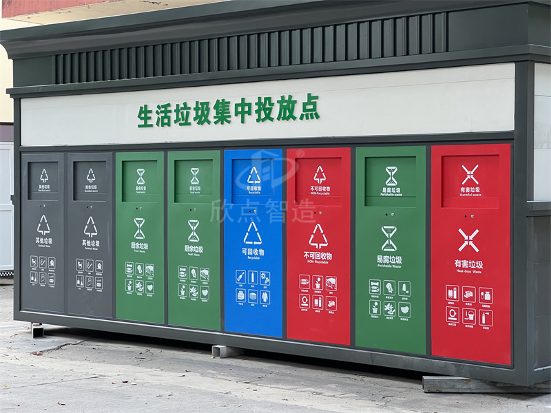 一般戶外垃圾房的要求,都是以鍍鋅鋼管作為框架,再加上金屬雕花板為外觀。這樣的智能垃圾分類房,外觀時(shí)尚現(xiàn)代,內(nèi)部空間大,根據(jù)人流量來(lái)選擇增加減少垃圾投放口。